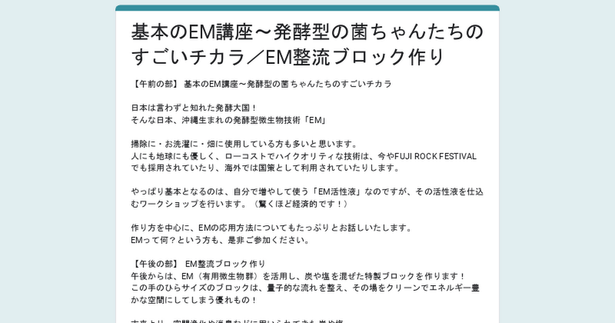 【午前の部】基本のEM講座~発酵型の菌ちゃんたちのすごいチカラ〜